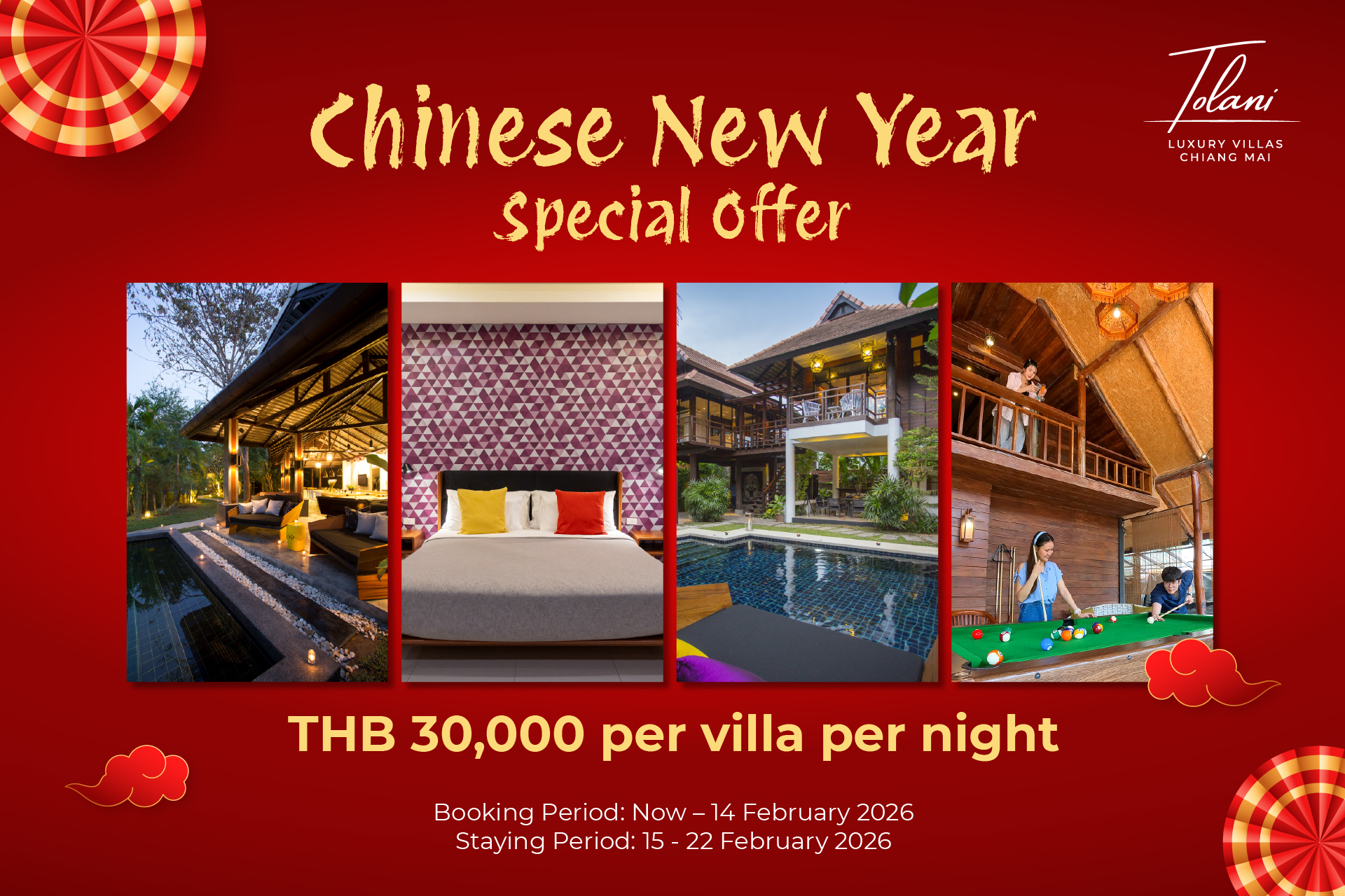 Welcome the Lunar New Year surrounded by the people who matter most. Gather, celebrate, and reconnect in complete privacy at Tolani Luxury Villas Chiang Mai where space, comfort, and warm moments come together.