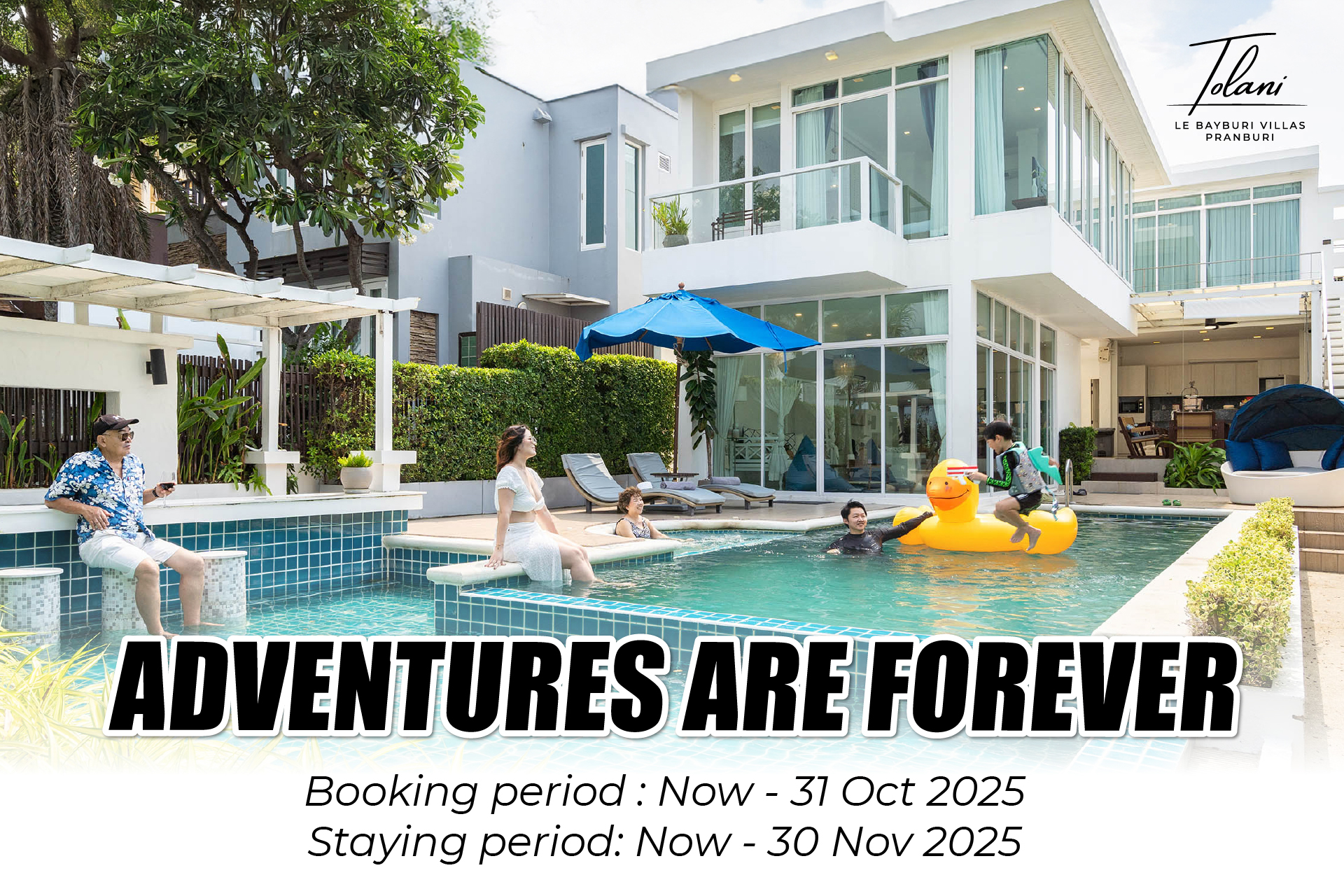 Get ready for a getaway like no other with the Adventures are Forever package at the stunning Tolani Le Bayburi Villas Pranburi!!