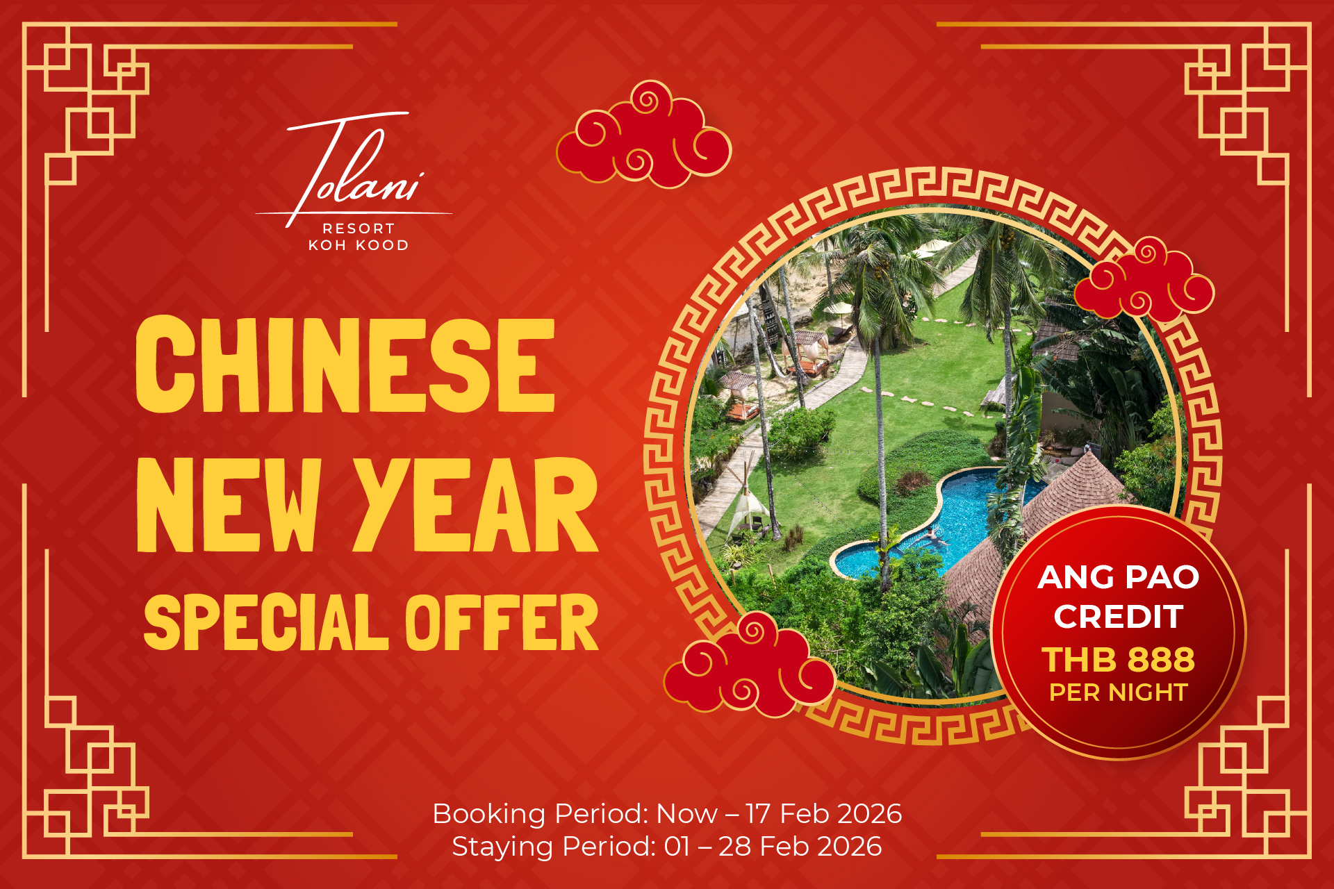 Ang Pao Credit : THB 888 per night to use everywhere at the resort