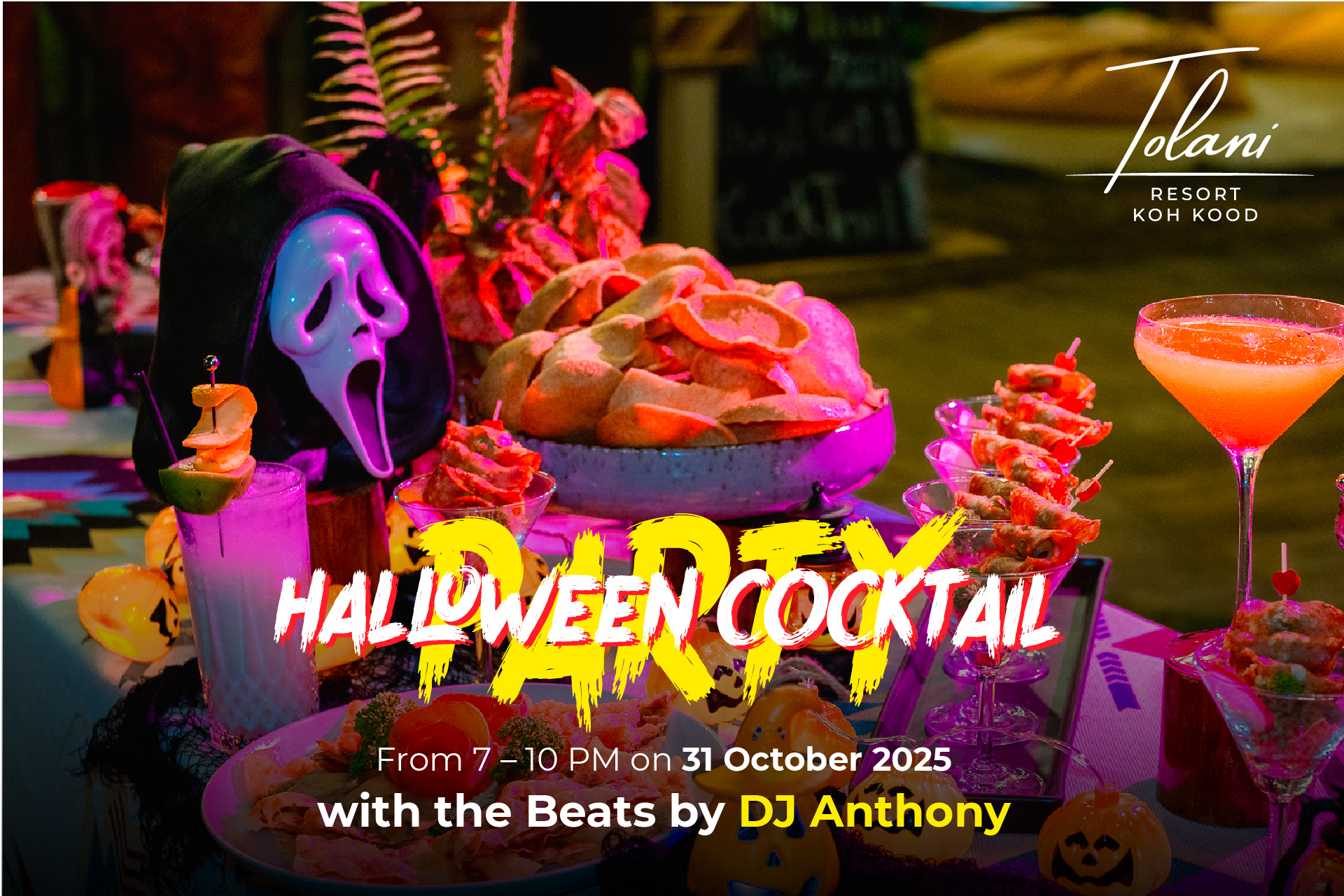 This Halloween, Zanzii Bar at Tolani Resort Koh Kood is going full spooky-chic. Picture lanterns glowing, shadows dancing, and DJ Anthony setting the beats as you sip unlimited cocktails by the sea.