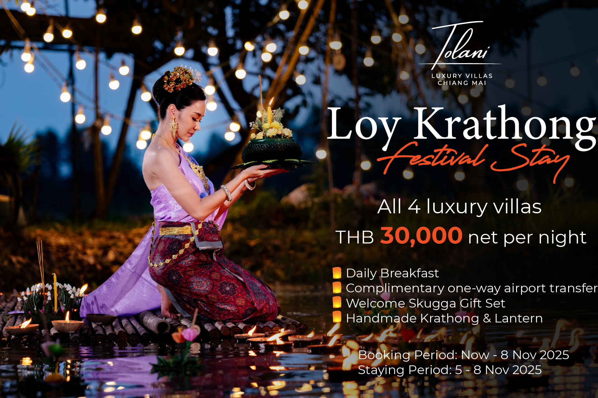 Celebrate one of Thailand’s most enchanting festivals in style with an unforgettable stay at Tolani Luxury Villas Chiang Mai. Experience the glow of lanterns, the beauty of floating Krathongs, and the warm spirit of northern Thailand — all from the comfort of your private luxury villa.