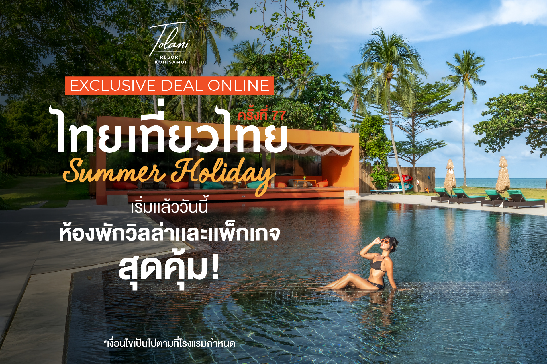 ฤดูร้อนของคุณที่สมุยเริ่มต้นแล้ว กับข้อเสนอพิเศษจากงานไทยเที่ยวไทย ครั้งที่ 77 ซัมเมอร์นี้ เติมความสนุกให้วันพักผ่อนที่หาดเฉวง สัมผัสบรรยากาศใจกลางแหล่งไลฟ์สไตล์ของสมุยที่ เพลินเฉวง บาย ทูลานี วางแผนล่วงหน้าเพื่อจองห้องพัก และใช้เวลาท่ามกลางแสงแดด ทะเล และช่วงเวลาแห่งการพักผ่อนอย่างแท้จริง