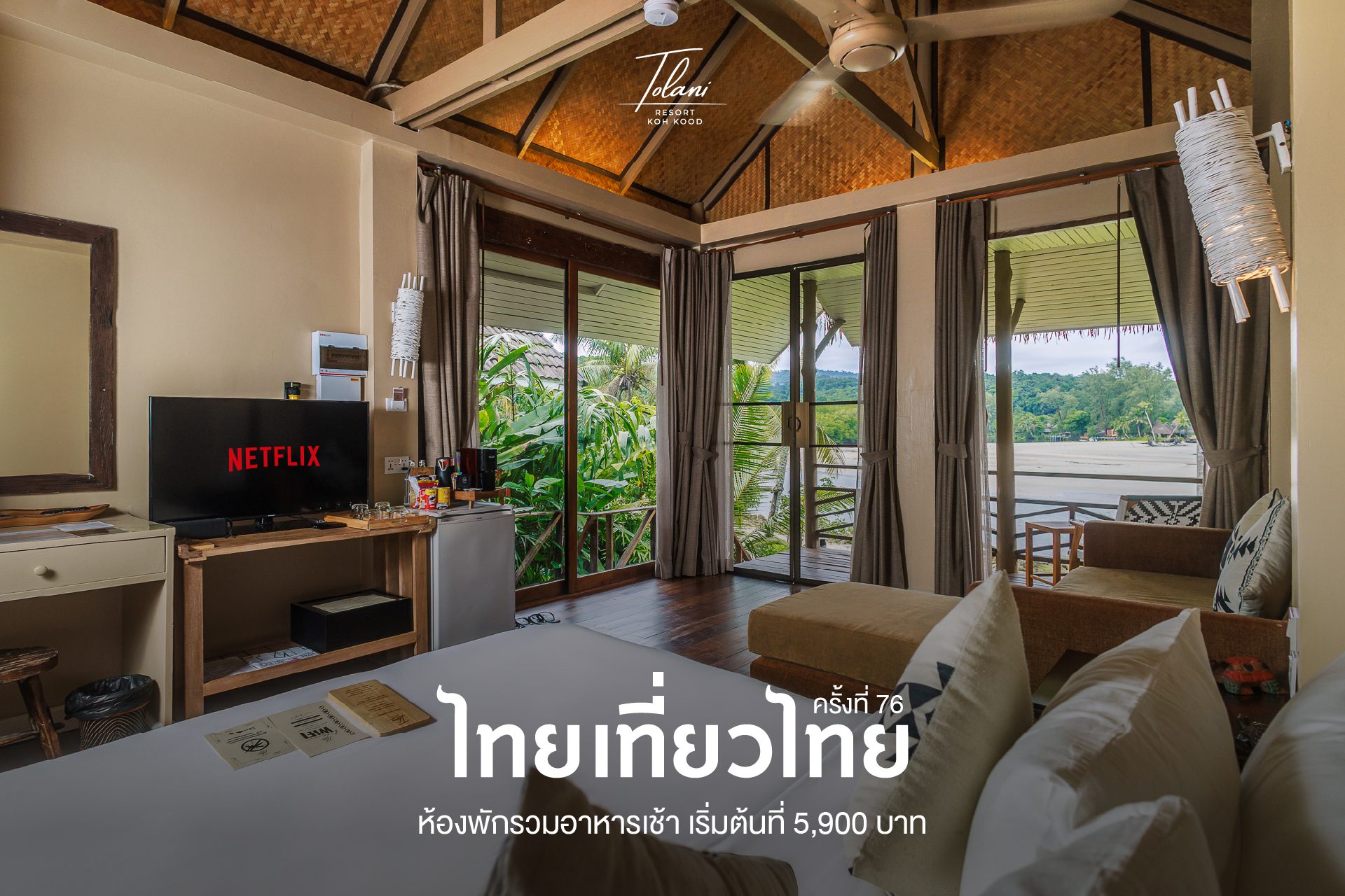 พบกับโปรโมชั่นไทยเที่ยวไทยครั้งที่ 76 x Tolani Resort Koh Kood หนีจากความวุ่นวายไปผ่อนคลายที่วิลล่าสไตล์โพลีนีเซียนบนเกาะกูด พักผ่อนท่ามกลางธรรมชาติ ฟังเสียงคลื่นเบา ๆ พร้อมวิวทะเลสุดชิล