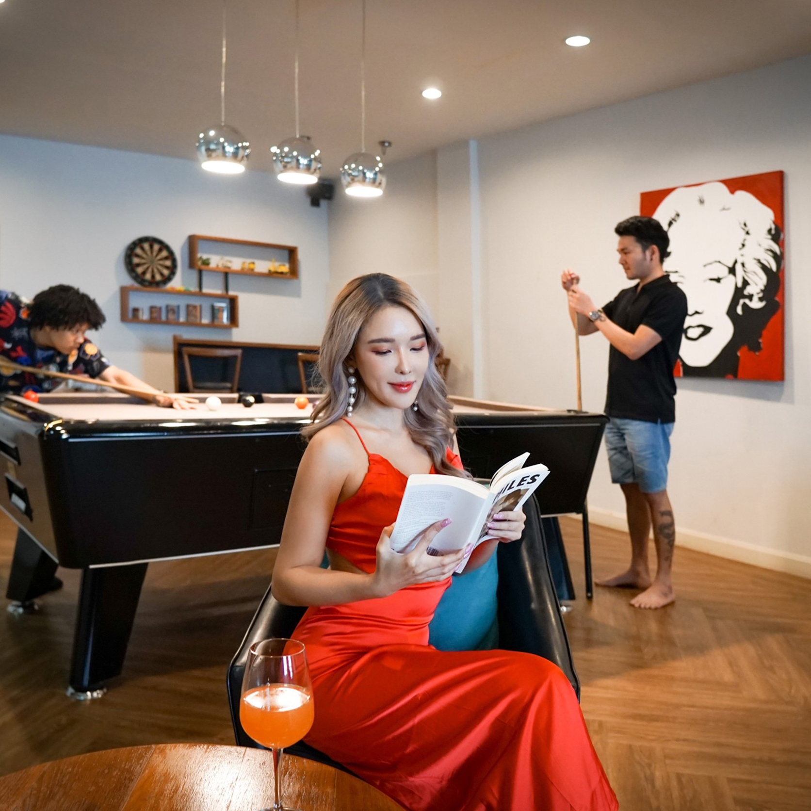 ห้องเล่นเกมพร้อมโต๊ะพูลและคาราโอเกะ ห้องประชุมส่วนตัว และอ่างจากุซซี่บนชั้นดาดฟ้า เหมาะสำหรับครอบครัวใหญ่หรือกลุ่มเพื่อน มีบริการแม่บ้านทำความสะอาดทุกวัน และบริการบัตเลอร์คอยดูแลคุณตลอดการเข้าพัก -