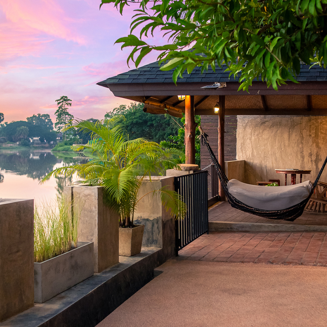 วิลล่าตั้งอยู่ติดริมแม่น้ำปิง ที่ผสมผสานความสงบเป็นส่วนตัวเข้ากับความสะดวกสบายในเมืองใหญ่ได้อย่างลงตัว วิลล่าหลังใหญ่แห่งนี้มีทั้งหมด 5 ห้องนอน 4 ห้องน้ำ โดยบ้านหลักประกอบด้วย 3 ห้องนอน (เตียงคิงไซส์ทุกห้อง) และห้องนอนแบบลอฟต์ 2 ห้อง - หนึ่งห้องมีเตียงคิงไซส์ และอีกหนึ่งห้องมีเตียงเดี่ยว 2 เตียง พร้อมห้องน้ำรวม 3 ห้อง ส่วนเกสต์เฮาส์แยกออกมาตั้งอยู่ติดแม่น้ำ มีเตียงคิงไซส์ 1 เตียงและเตียงเดี่ยว 1 เตียง พร้อมห้องน้ำในตัว และมองเห็นวิวสระว่ายน้ำส่วนตัวกับเฉลียงริมแม่น้ำโดยตรง