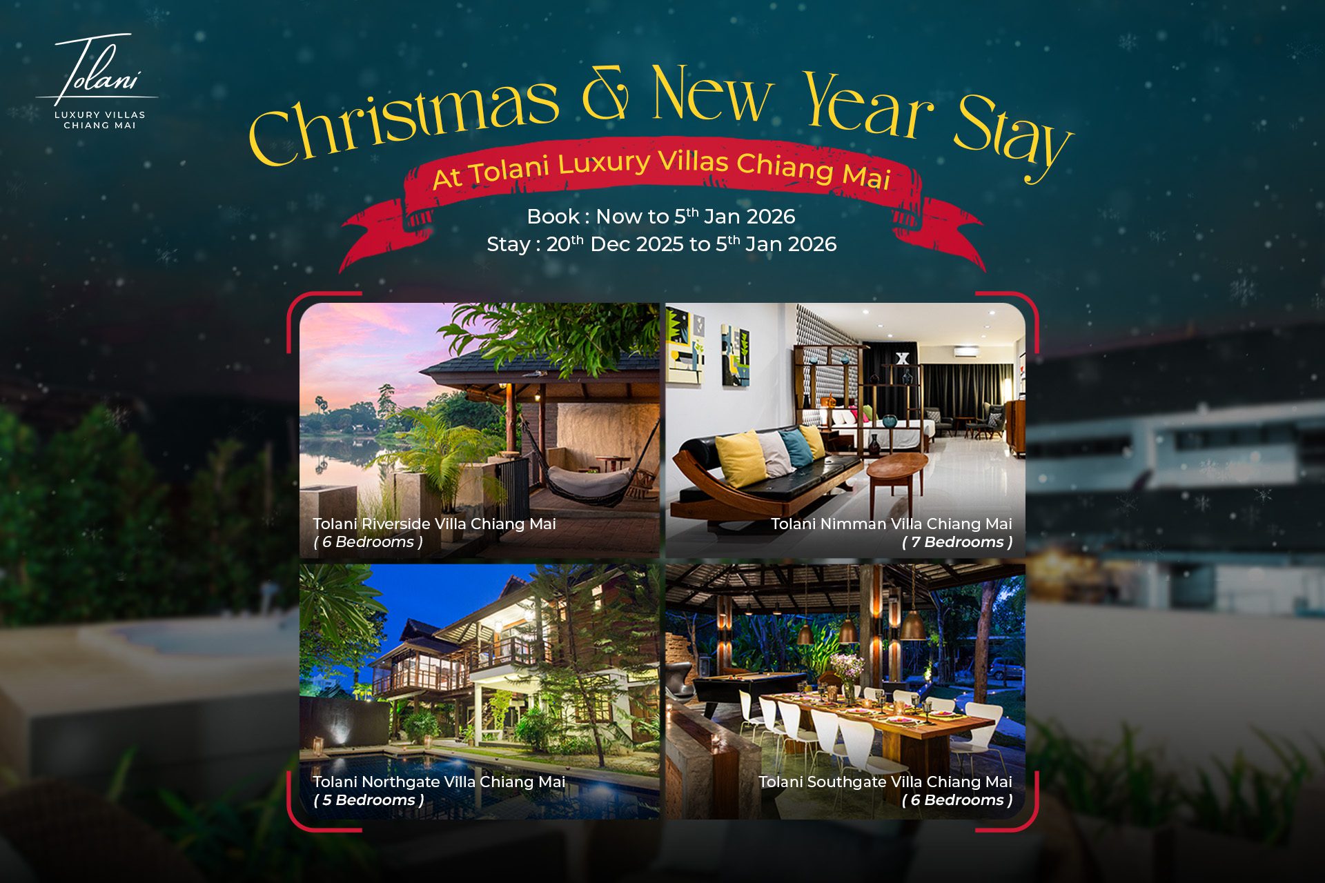 Experience the beauty of Chiang Mai’s cool season in pure comfort and style. Nestled in the heart of the north, Tolani Luxury Villas Chiang Mai invites you to enjoy an exclusive Winter Season Promotion, where all four villas are offered at one special rate.