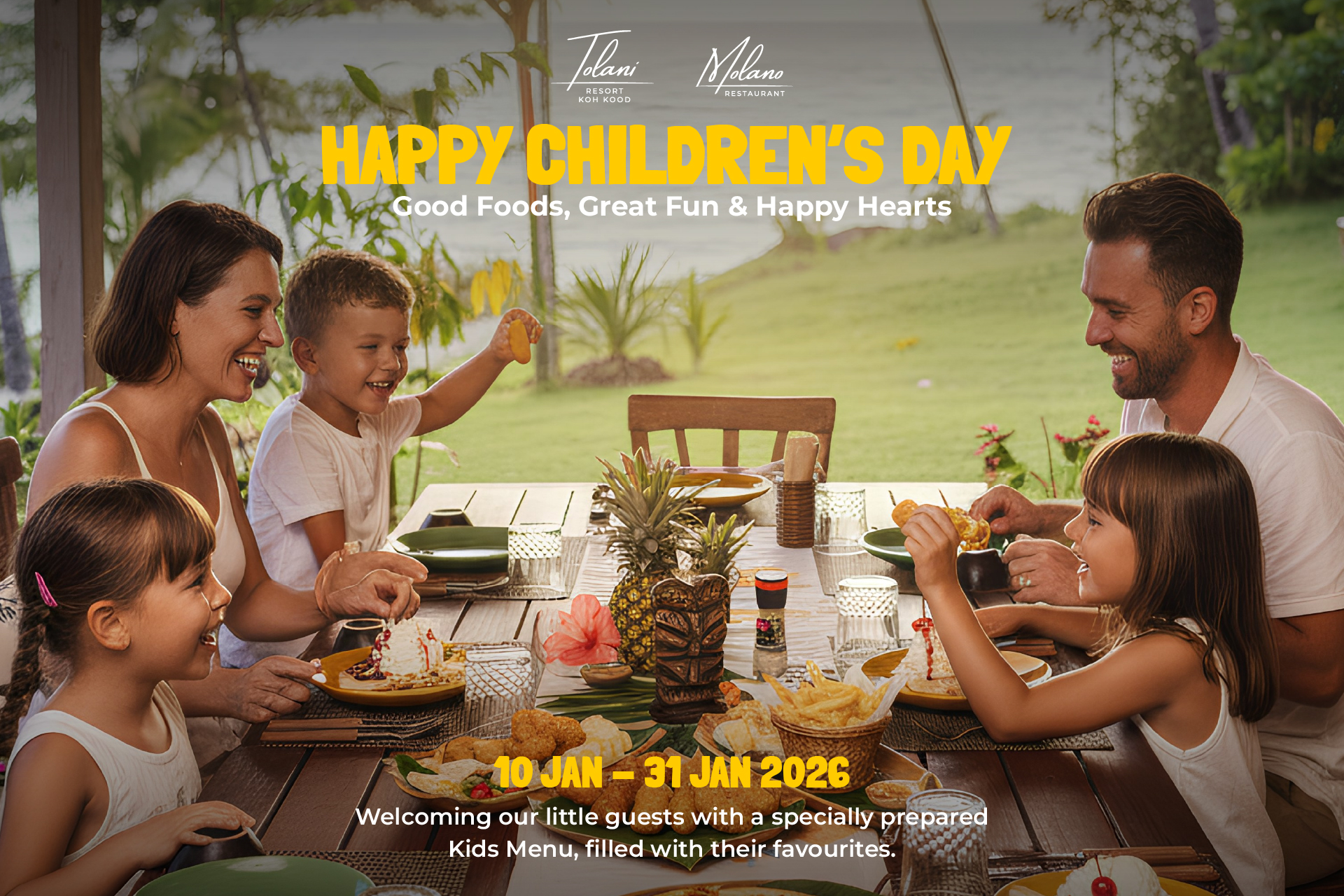Celebrate Children’s Day with delightful family moments at Molano Restaurant, Tolani Resort, where our young guests are treated to a specially curated Kids Menu designed to please little appetites while keeping parents at ease.