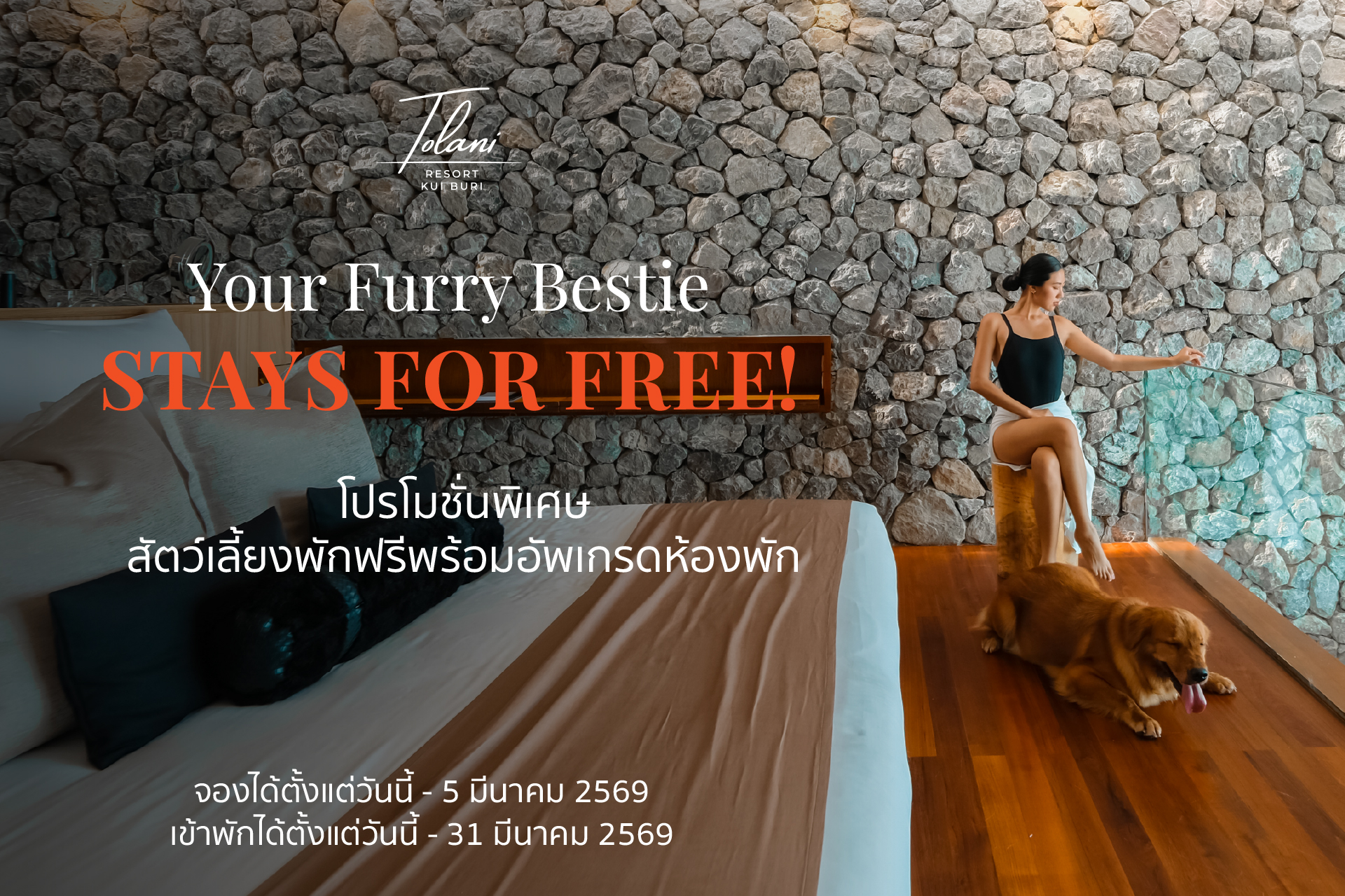 Unleash the perfect getaway at Tolani Resort Kui Buri. Why leave your best friend behind when you can enjoy the rugged beauty of Kui Buri together? At Tolani, we believe vacations are better when shared with those you love—including the furry ones. Book our exclusive Pet-Friendly Special and enjoy premium perks, room upgrades, and a toast to the good life.