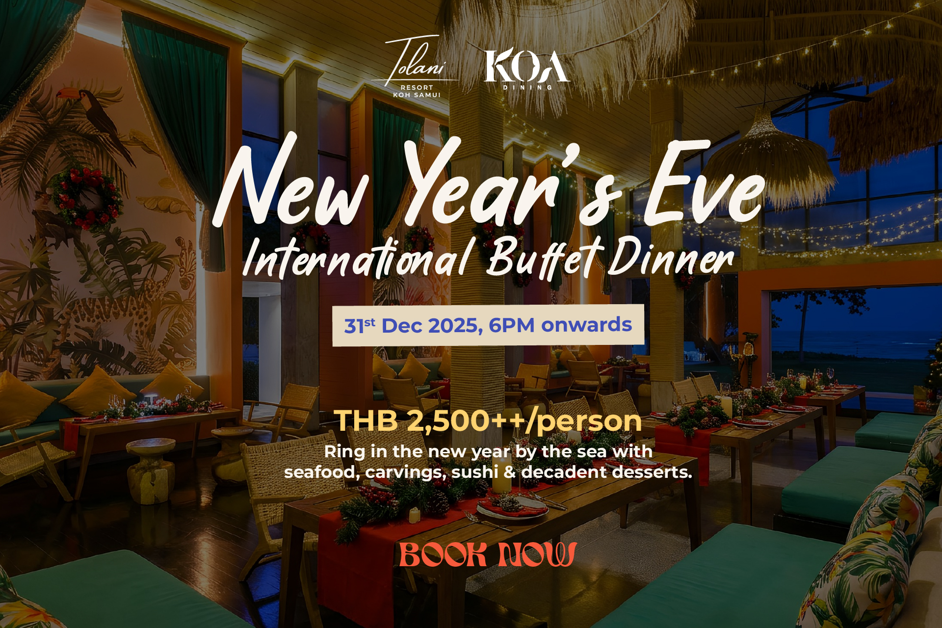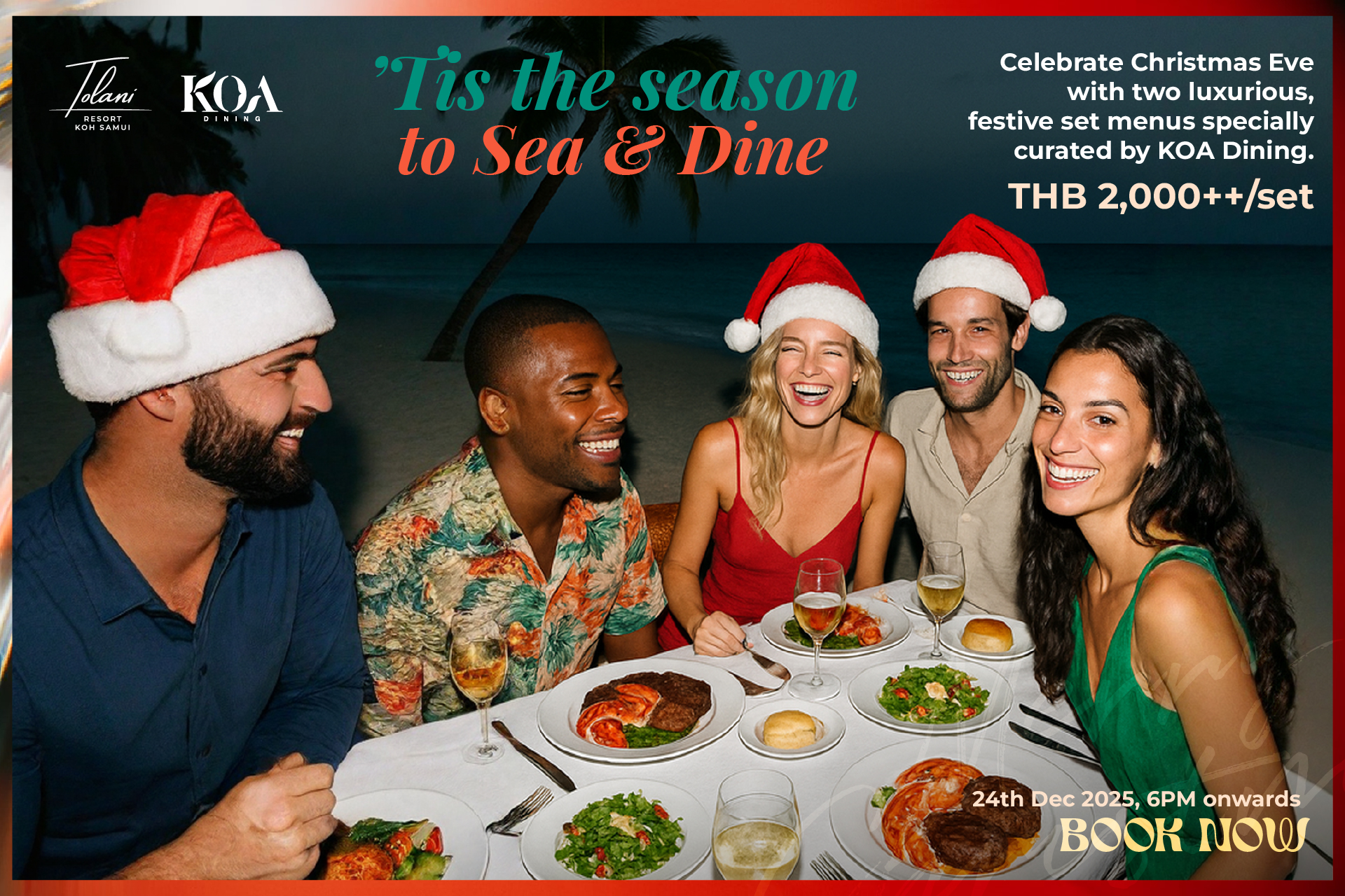 Celebrate the most magical time of the year with two unforgettable festive dining experiences at Tolani Resort Koh Samui. Set by the gentle sea breeze and KOA Dining warm tropical charm, our holiday dinners are crafted to bring loved ones together through exceptional food, cozy ambience, and the joy of festive gatherings.