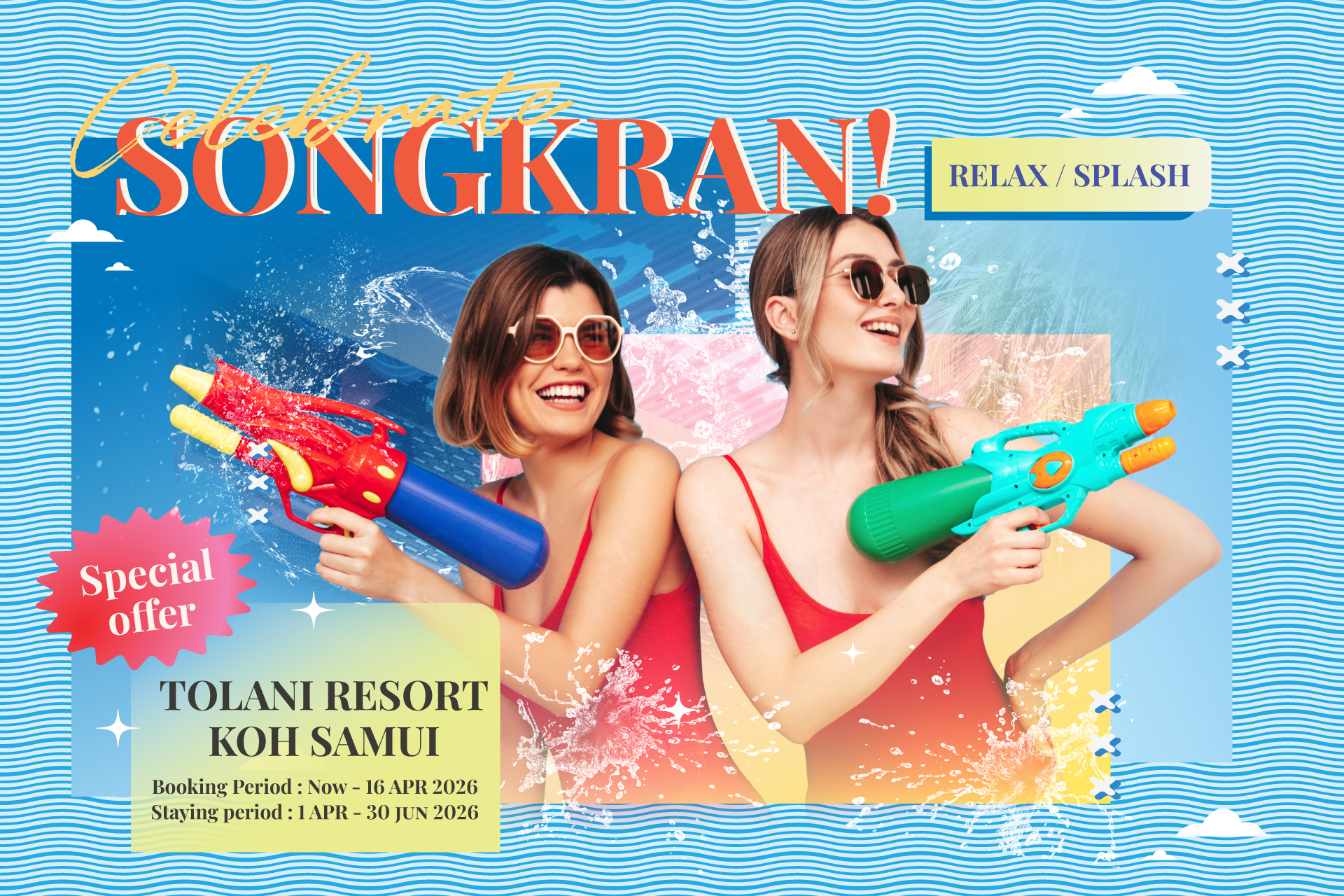 This Songkran, escape the city’s hustle and unwind by the beautiful sea at Tolani Resort Koh Samui, where every moment of your stay is filled with freshness, relaxation, and happiness.
